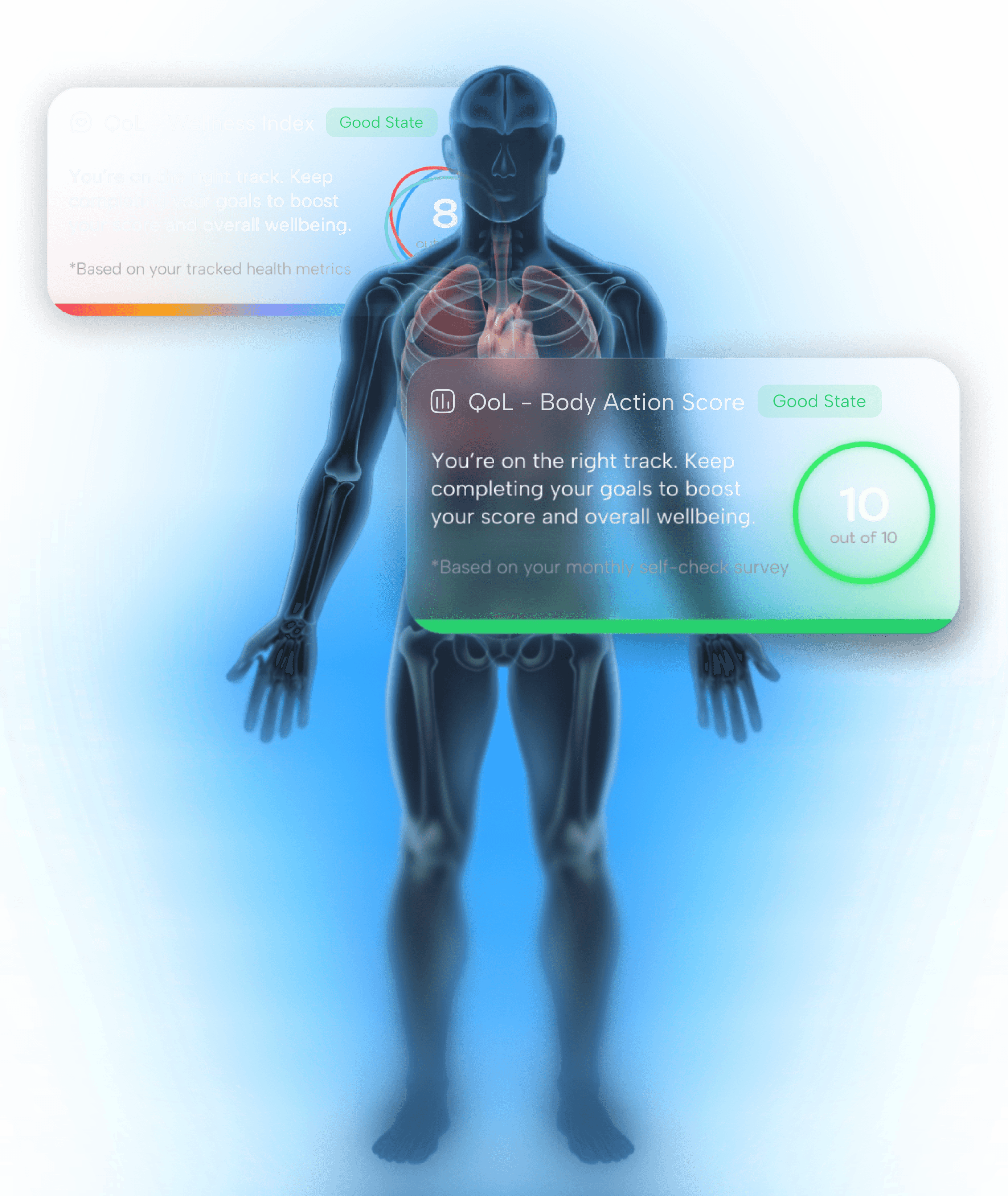 Qoluna creates a real-time feedback loop between You and your Doctor, connecting live data, longitudinal trends and clinical insight into a single, evolving view of your health.