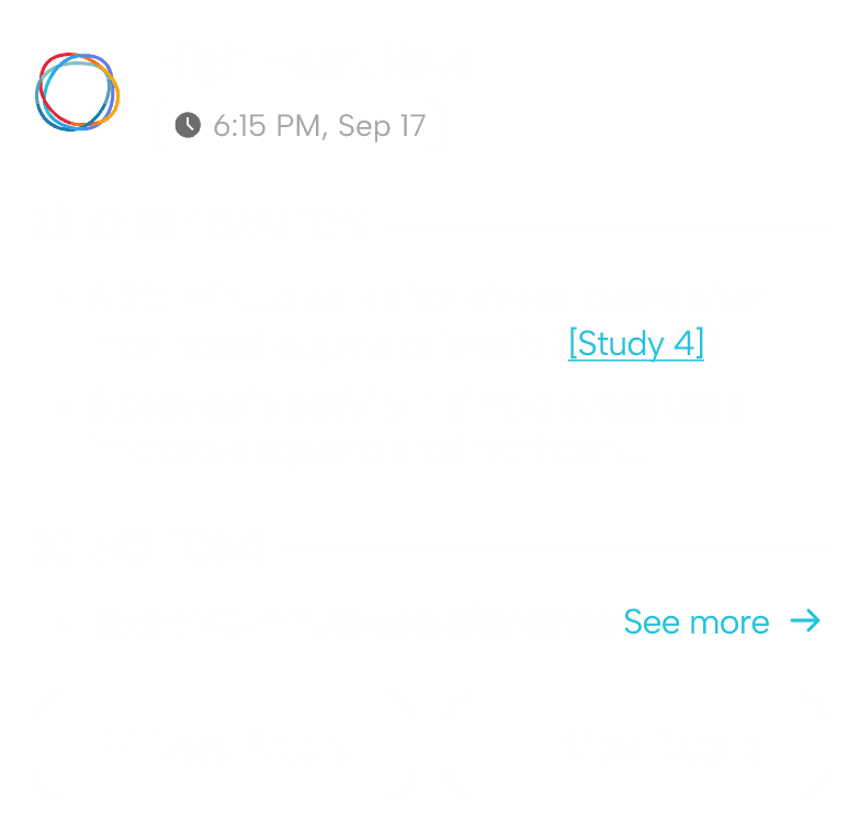 Intelligent, personalized insights you can act on. Spot hidden patterns and take proactive steps that make a real difference in your well-being. Each observation is algorithmically curated using your data against thousands of medical and scientific journals.